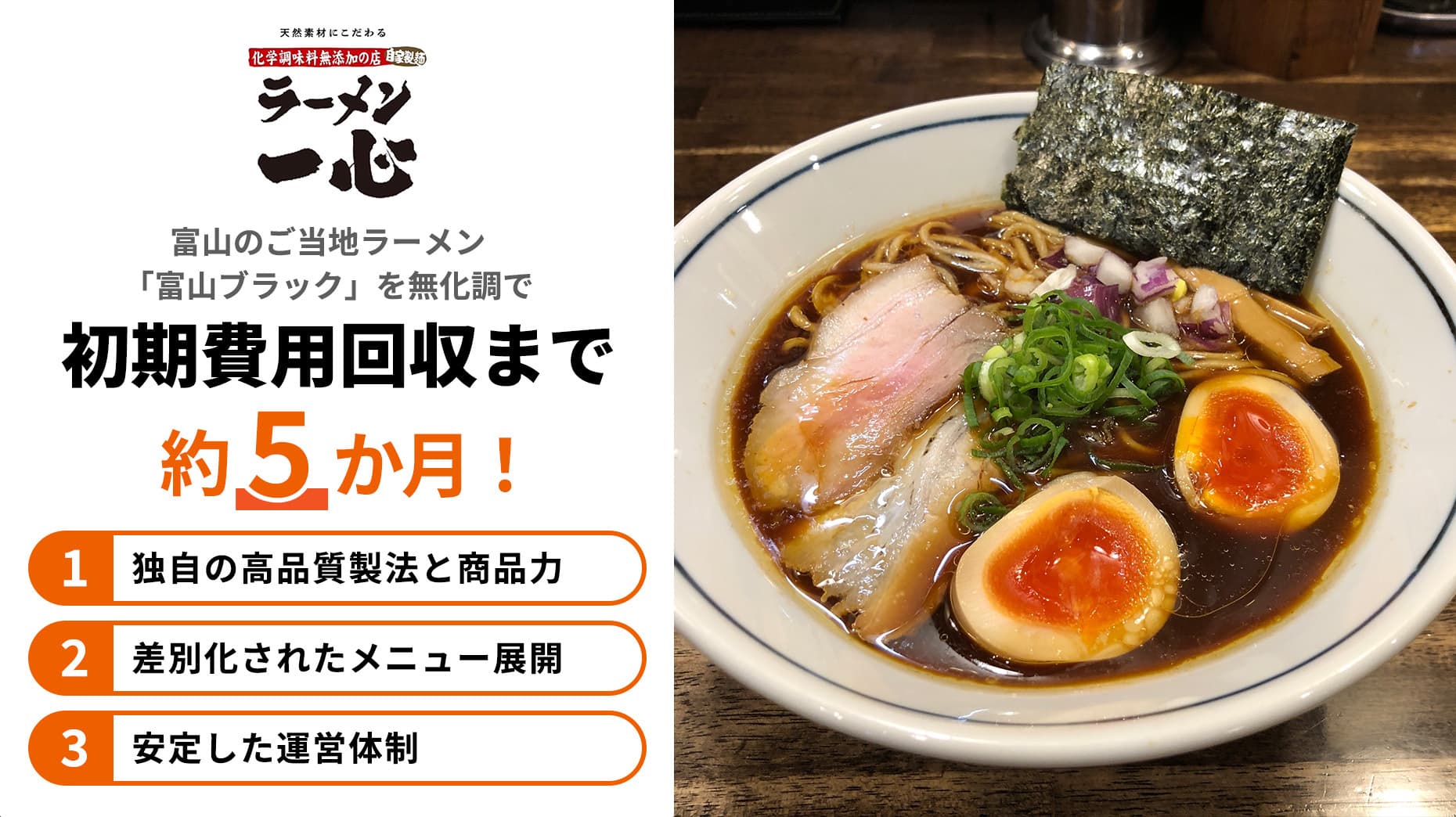 ■まん延防止等重点措置・発令中でも開業1ヵ月目から黒字。3ヵ月で予約の取れない店に! <23歳の時に飲食店開業の夢を持つ 15年後、大吉に出会い開業を決意!> はじめて独立を意識したのは23歳の時です。モノづくりが好きで大手機械メーカーに入ったのですが、所属部署の変遷もあり、当初の自分の想いと会社の方向の違いを感じ、いつしか独立や開業を考えるようになりました。当時やりたいと思っていたカフェをはじめ、飲食店開業に関する情報収集を開始。以来、気になったFCに資料請求をしたり説明会に行ったりしていました。運命の出会いは38歳の時です。独立開業の雑誌で大吉を見つけて「居酒屋もいいかな」と資料を請求。研修制度が整っており、未経験の自分もできると思いました。決め手は同封されていた大吉創業者の辻会長の著書です。共存共栄という理念に感銘を受け「ゼッタイ大吉をやる」と決めました。 <調理・接客経験ゼロから研修スタート! 3ヵ月で技術や知識、心構えを身につけ開業> 私は希望立地で開業するオーナー方式を選んだので、店舗物件の取得が必要となります。物件取得に関しては、大家さんや融資を受ける金融機関との交渉など本部の方がとても親身にサポートしてくれました。店舗物件を取得した後、3ヵ月間3店舗での研修がスタート。調理・接客経験ゼロだったので、当初は本当に開業できるか不安になるくらい何もできませんでした。最初の研修店で、包丁の握り方やお客様への挨拶をはじめ基本を習得。2店舗目は焼き方やお客様とのコミュニケーションの取り方、3店舗目は店舗運営や経営面のアドバイスなど、段階を踏んで教えていただく中で必要な技術や知識はもちろん、店主としての心構えも徐々に身についてきました。 <まん延防止等重点措置の中でもお客様が増加 わずか開業3ヵ月で予約の取れない店に!> 2022年1月、20代から夢見ていた自分の店を開業。まん延防止等重点措置・発令中だったため、当初はテイクアウトのみでしたがその日に仕込んだ焼き鳥が連日完売となり、1ヵ月目から利益を出すことができました。その後、時短営業を経て、通常営業を開始できたのは約1ヵ月前。「テイクアウトで気に入った」と来られる方や、「やっと近所にできた!」という大吉ファンの方も多く、最近は予約が取れない店と言われるほど…。週末は予約だけで閉店まで(密にならないように気をつけながら)満席です。この仕事の喜びは、お客様の「ありがとう」「おいしかった」の言葉。今後は2号店開業を視野に入れつつ、子ども食堂の運営など、地域に貢献したいと考えています。