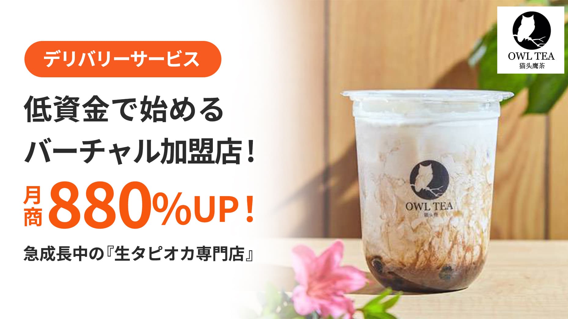 創業5年目を迎える「生タピオカ専門店 OWL TEA」。 コロナ過で食べ歩きが難しいなか、デリバリーサービスをいち早く取り入れ全国に店舗を拡大中。既存店の副業としても導入できる新しいスタイルのフランチャイズです。