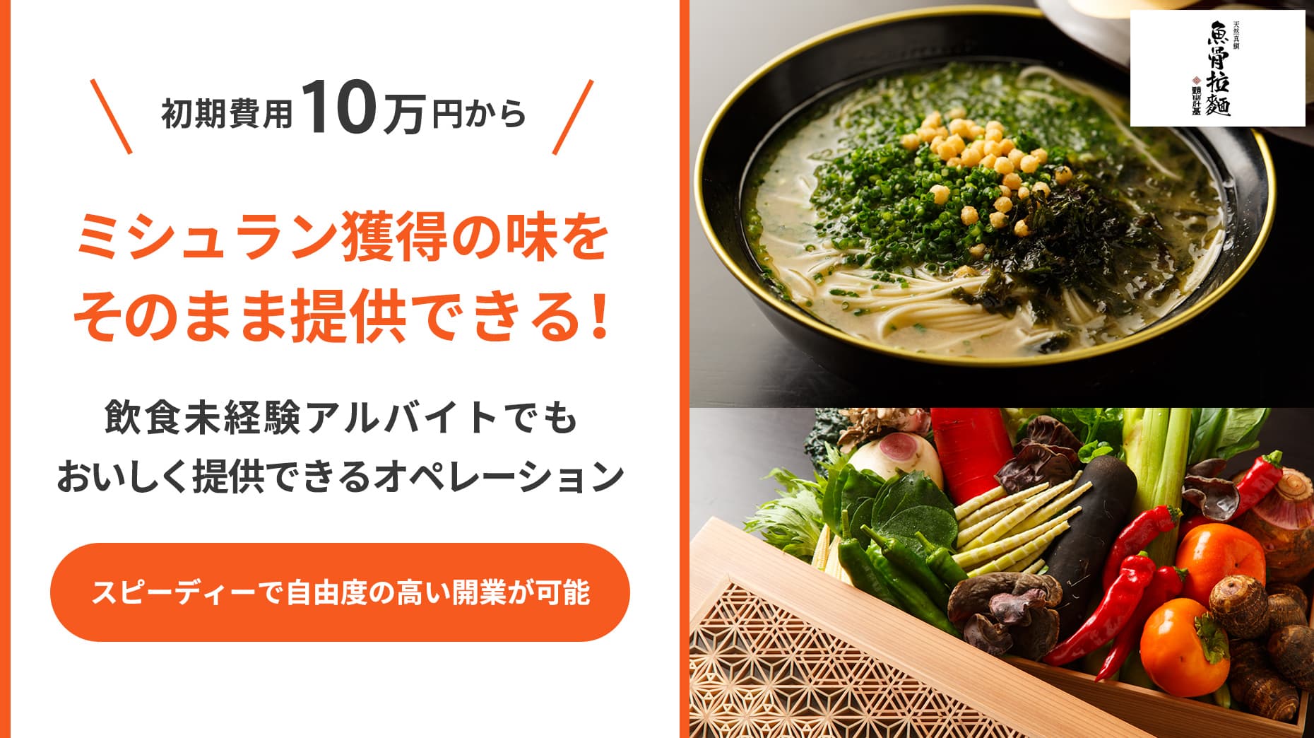 初期費用10万円からで月々の支払いは低価格!パートナー制度で店名や商品等自由度高く利用できる拉麺ビジネス