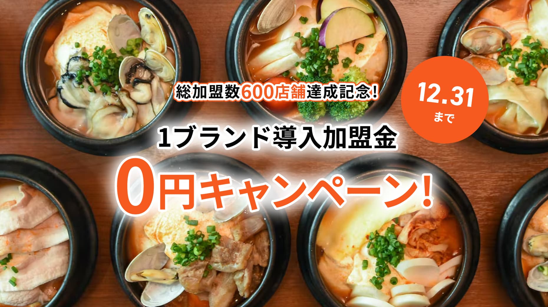 累計600店舗達成記念!!【加盟金0円キャンペーン!!】今だけ1ブランド加盟金0円で導入頂けます!※12/31までの期間限定ですのでお問い合わせはお早めにお願い致します。神戸で人気!韓国料理店【韓辛DELI】のスンドゥブのバーチャルレストランFC!