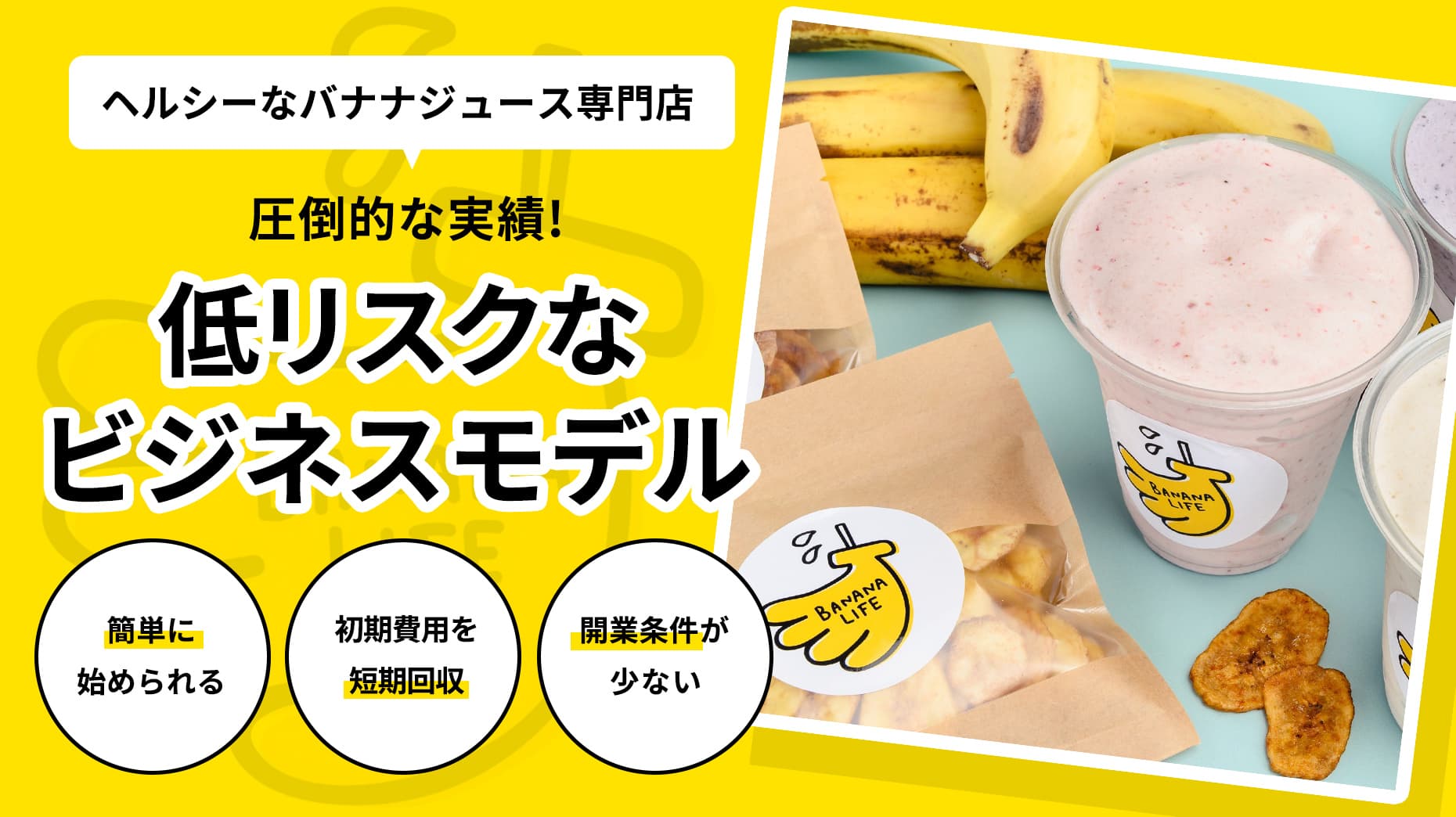 低コストで短期開業が可能!圧倒的な実績の「バナナジュース専門店」を飲食の経験がなくても開業できる