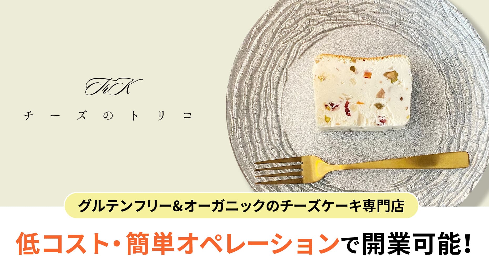 「チーズのトリコ」は「自然美」をテーマに、グルテンフリー・オーガニック・白砂糖を使わないことをモットーとしている福岡県福岡市のチーズケーキ専門店です。多くのメディアやSNSなどでも取り上げられ、プロスポーツ選手が立ち寄るほど話題の「チーズのトリコ」が、低コストでFC出店が可能になりました! チーズトリコのチーズケーキは、鹿児島県産の生クリームと北海道産のクリームチーズに、奄美諸島のさとうきびのミネラルと風味を素のままじっくり丁寧に焚きあげた「素焚糖」など、選りすぐりの原材料を使用し、一本一本が手作りで作られています。素材を最大限に活かした繊細な製法で「体に優しいスイーツ」に仕上がっています。チーズケーキ自体は、絶妙な口どけ・風味・香りにこだわり、気温や湿度によって細かく焼成時間を調整するなど、たくさんの時間をかけて開発されています。 導入にあたっては、加盟プランが複数用意されているので、テイクアウト専門店やイートイン併設店舗はもちろん、美容室やエステなどの一角に出店することができるなど、飲食店以外の場所(※業態に応じて許可申請等要)でも出店できる汎用性の高さが魅力です。製造は本部が行なっているため、加盟店は販売のみに専念することができ、一部の導入プランには本部が運営しているECサイトの売り上げが加盟店にも還元される仕組みが導入されています。