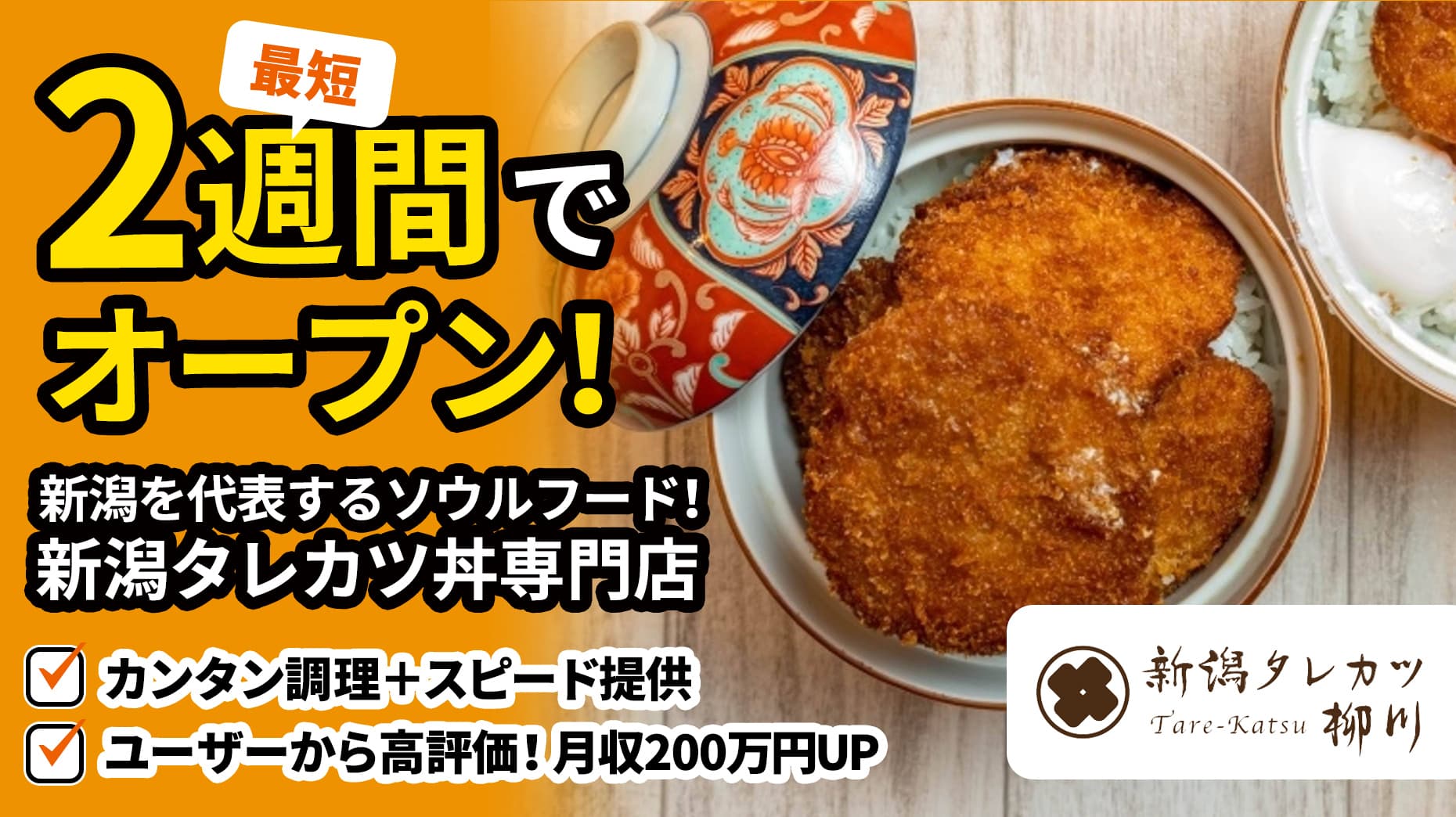 【最短2週間でOPEN可能】新潟を代表するソウルフード「タレカツ」専門店!簡単調理でスピード提供可能&ユーザーからも高評価のデリバリーFCで売上UP