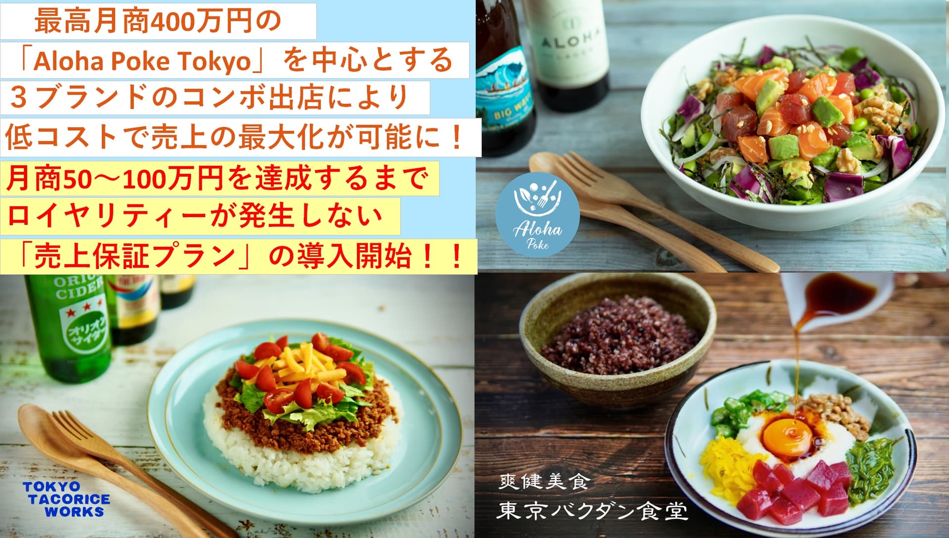 「売上保証プラン」導入スタート!最高月商400万超えのポキ専門店「Aloha Poke Tokyo」を中心とする3ブランドでのコンボ出店で効率的に収益を確保!
