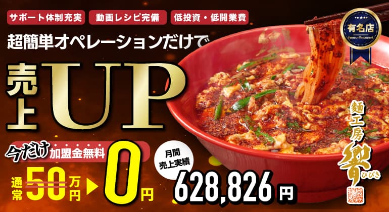 【ブランドのについて】 宮崎県のご当地グルメ!煮干しベースのスープに唐辛子の旨みを活かした麺料理です。噛み応えのある「こんにゃく麺」が最大の特徴。溶き卵とニラと一緒に味わうことで旨辛な世界が口いっぱいに広がります。 【注目ポイント】 ・茹で麺機なくてもOK! ・こんにゃく麺なので、茹で時間たった2分! ・小ポーションで納品されるので、ロスも少なく短時間での調理が可能です。 ■キッチンオペレーション シンプルなオペレーションでカンタン調理 コンロと鍋があれば6分で調理可能です。 ●仕込み工数:かんたん ●調理時間:6分 ●調理食材:麺 ●調理設備:鍋、電子レンジ、フライヤー ●調理方法:麺茹で、盛り付け \毎月10店舗様限定!加盟金50万円→0円(特別キャンペーン)/ 【AETA WORLDについて】 100種類以上のブランドから、お店の規模や業態に合わせて自由に組み合わせて運用が出来る日本最大のバーチャルレストランサービスです。 導入検討にあたって《5大ポイント》をご紹介! ❶導入拠点数業界No.1! ❷お店の状況に合わせてブランド交換やブランド数の増減が自由自在 ❸Uber EatsやWolt、出前館などの複数の注文タブレットを1つのタブレットで一元管理 ❹運用開始後も専任のサポート担当が運用フォロー ❺店舗オリジナルメニューとして提供可能(一部ブランドを除く)