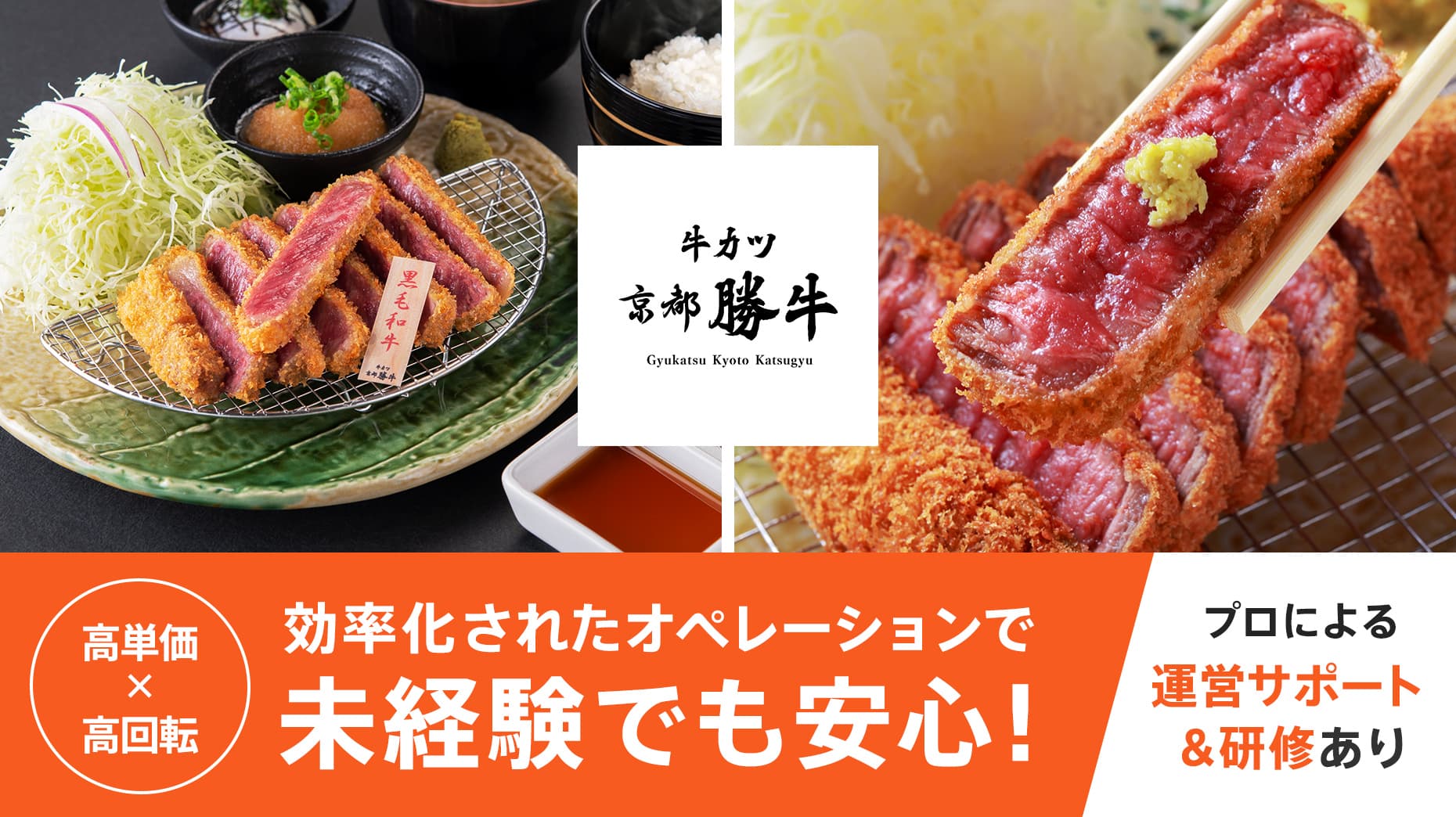 2014年創業以来、国内外で根強い人気を誇る京都発の牛カツ専門店。 日本の牛カツブームの牽引役を担なった「牛カツ京都勝牛」は、品質や調理法にこだわり、説得力を持たせることで平均1,400円という定食業態の中ではズバ抜けた高単価を実現。 また、自社セントラルキッチンや、提携先工場で食材を仕込むことで、コスト削減・提供時間の短縮に成功。 高単価×高回転を両立させた利益率の高いFC事業です。 現在は日本に留まらず、韓国・台湾・香港・カナダに店舗を有しており、海外進出を果たしグローバルに展開しています。 ★2021年4月にオープンした新店舗は、20坪31席で 【11月までの平均月商:1,250万円超え!】